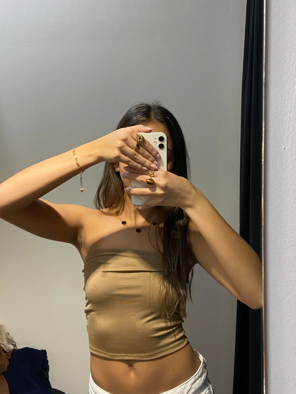 Este bando es ideal para usar bajo blusas, vestidos o tops sin tirantes, o para crear looks sencillos pero elegantes. Puedes combinarlo con una falda de tiro alto o jeans para un estilo moderno.